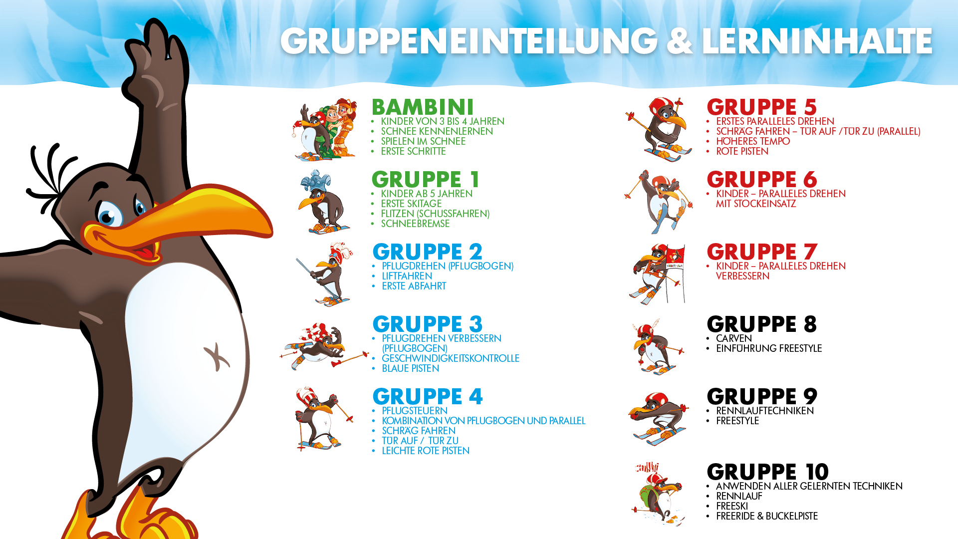 Die 10 Stufen zum Skifahren - mit Pinguin BOBO's Kinder-Club